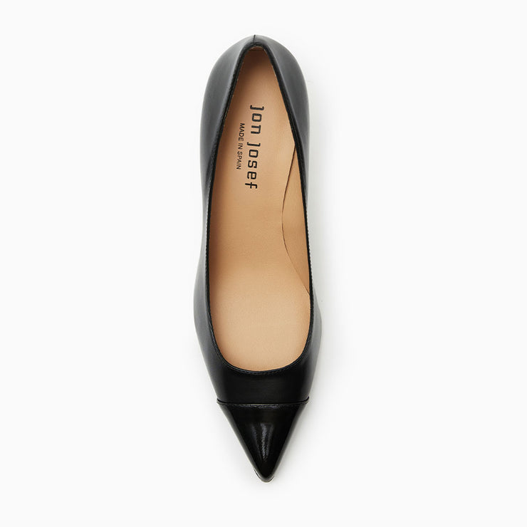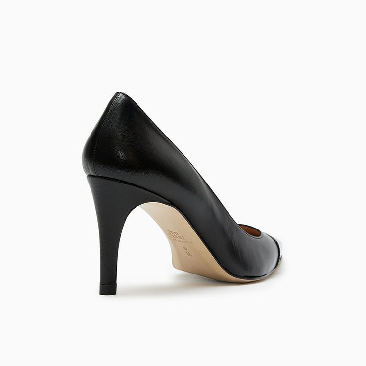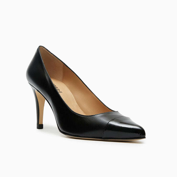 Our next generation Paris pointed cap toe pump has an all-new straight heel for elegance and comfort.